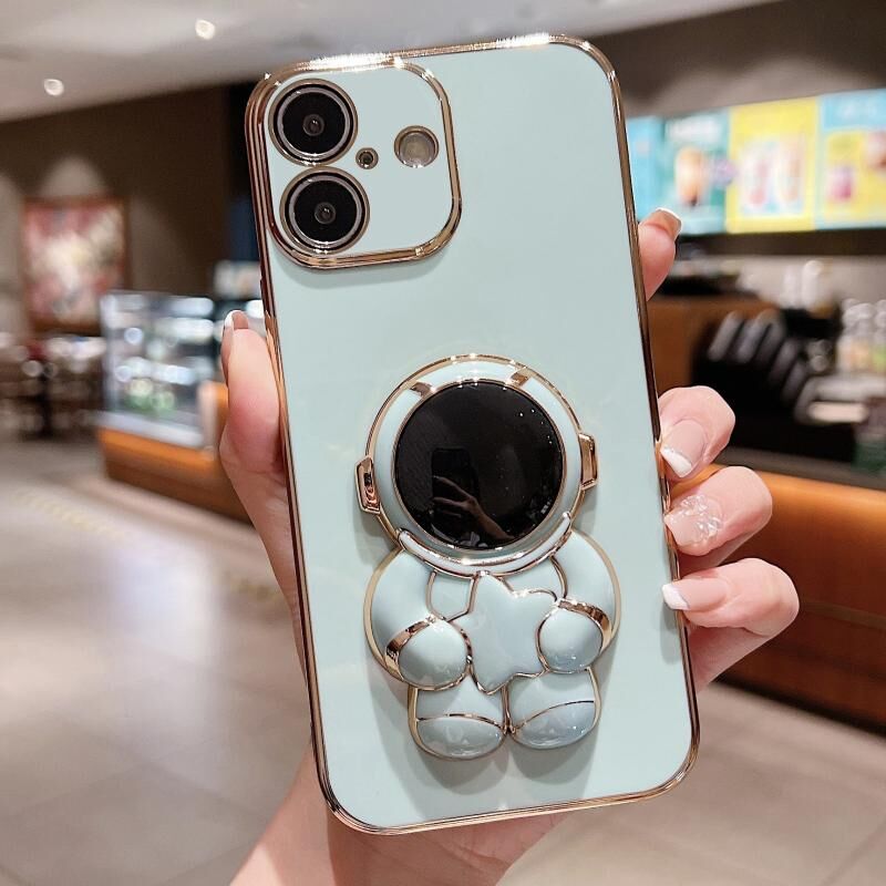 Θήκη τηλεφώνου για iPhone 16 Plus με ηλεκτρολυτική επίστρωση, σχέδιο αστροναύτη και αστεριών (Ροζ)