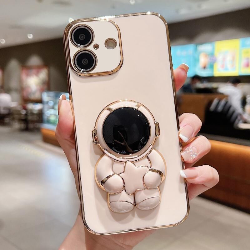 Θήκη τηλεφώνου για iPhone 16 Plus με ηλεκτρολυτική επίστρωση, σχέδιο αστροναύτη και αστεριών (Ροζ)