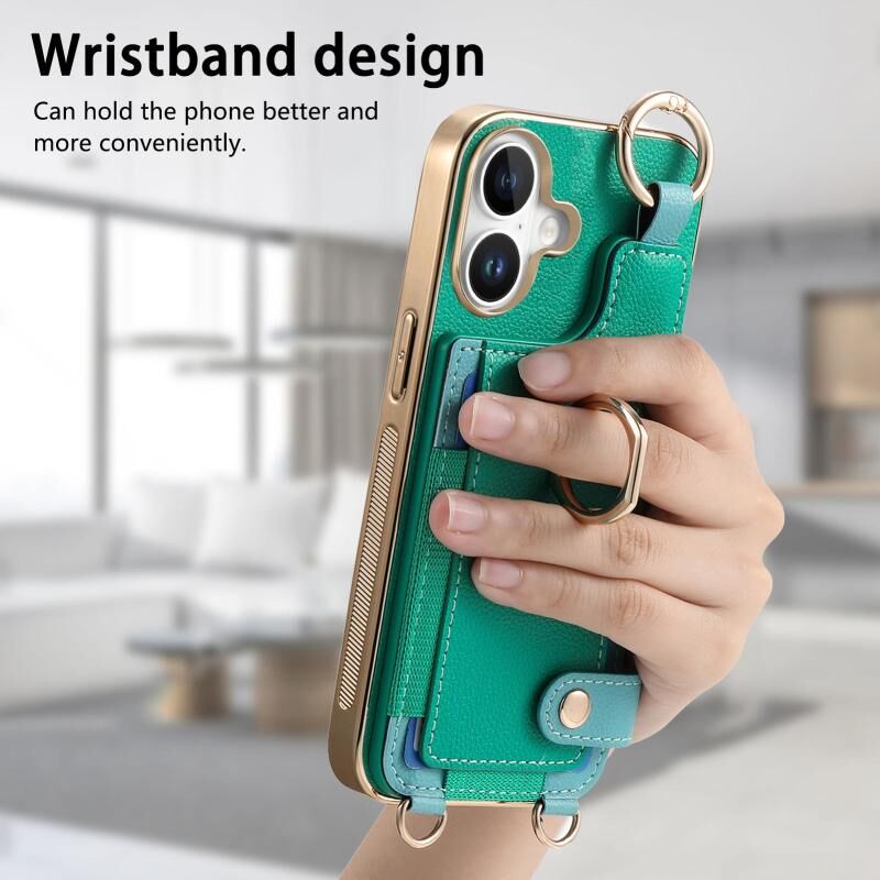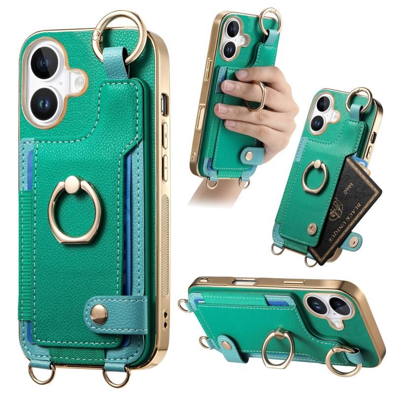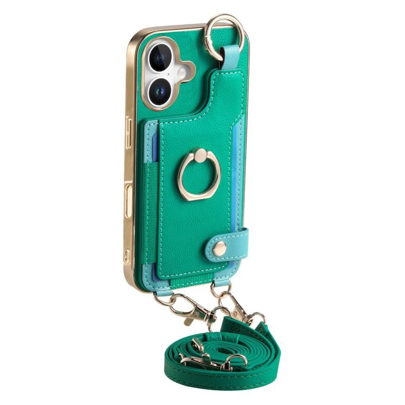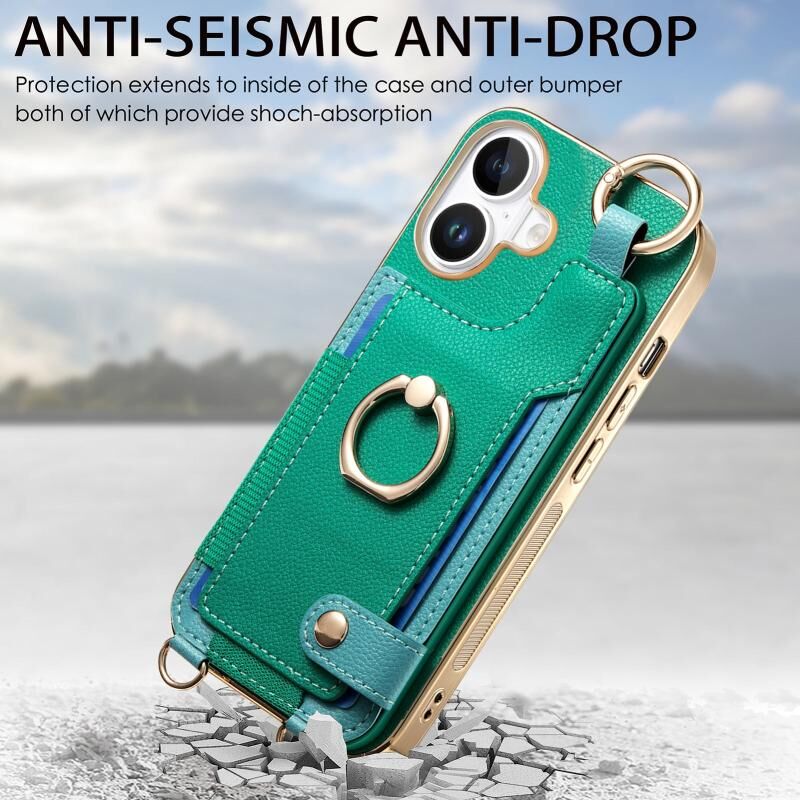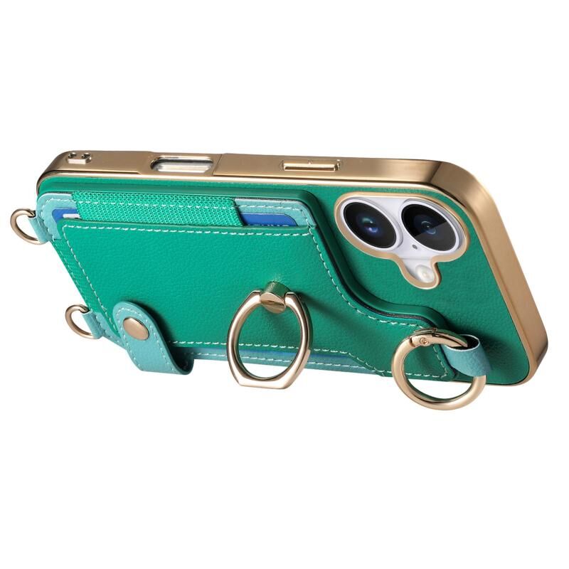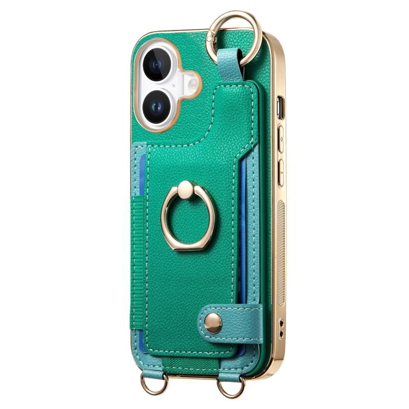 Θήκη κινητού τηλεφώνου για iPhone 16 Plus με μοντέρνο δακτύλιο και θήκη καρτών (Καφέ)