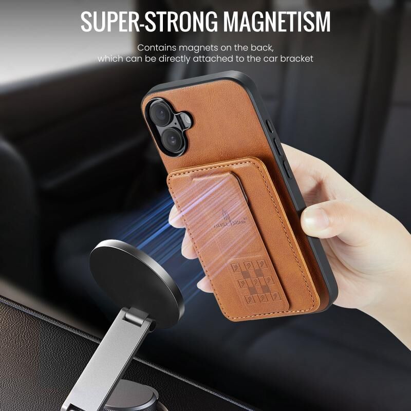 For iPhone 16 Plus Fierre Shann Oil Wax Cow Leather Card Holder Back Phone Case(Brown) (FIERRE SHANN)
