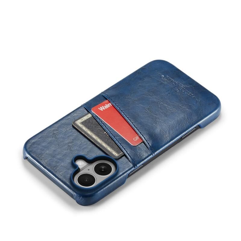 Θήκη κινητού τηλεφώνου από δέρμα PU με υφή λαδιού και ρετρό σχεδιασμό, με θήκες για κάρτες, για iPhone 16 Plus (Κόκκινο) (Μπλε)