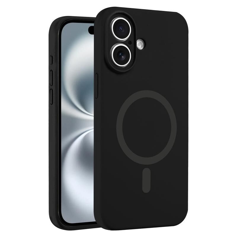 For iPhone 16 Plus Fine Hole Pure Color Liquid Silicone MagSafe Phone Case(Black)