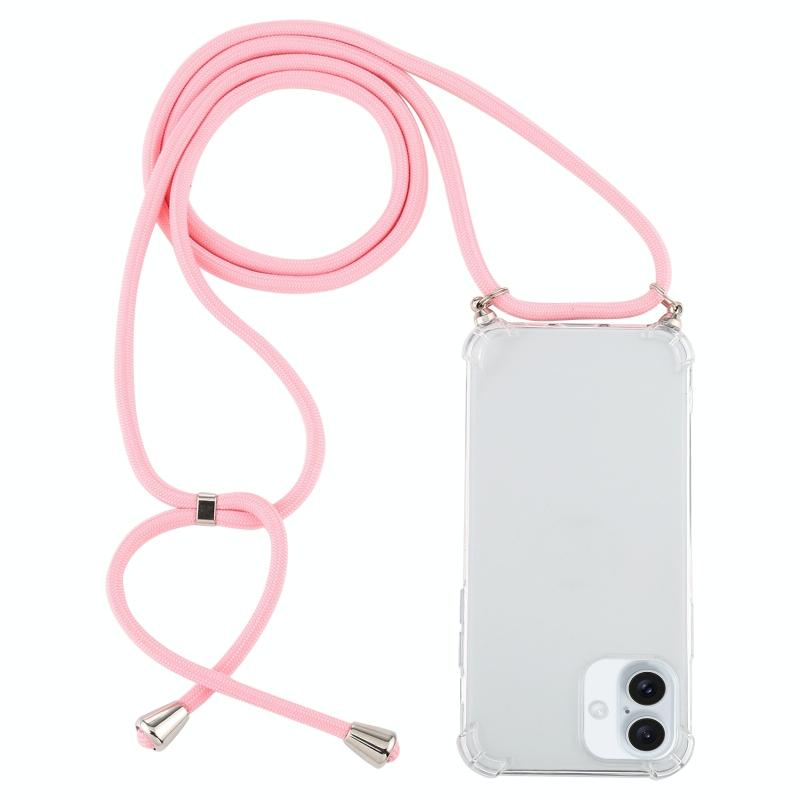 Θήκη για iPhone 16 Plus Διαφανής TPU αντικραδασμική, με κορδόνι (Ανοιχτό Ροζ)