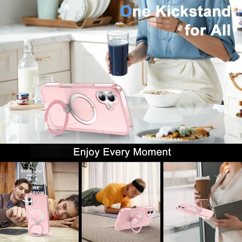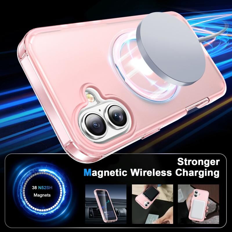 Θήκη κινητού τηλεφώνου 360° για iPhone 16 Plus με ματ υφή, βάση MagSafe (Ροζ)