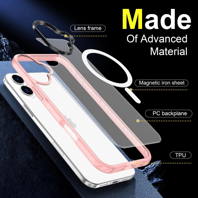 Θήκη τηλεφώνου MagSafe Διαφανής με αίσθηση παγωμένου δέρματος για iPhone 16 Plus (ρόζ)