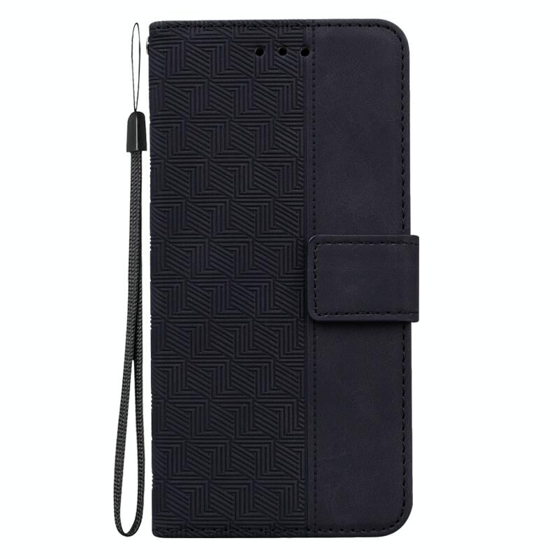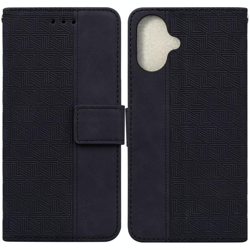 Για iPhone 16 Plus Γεωμετρική θήκη τηλεφώνου με ανάγλυφο δέρμα (Μαύρο)