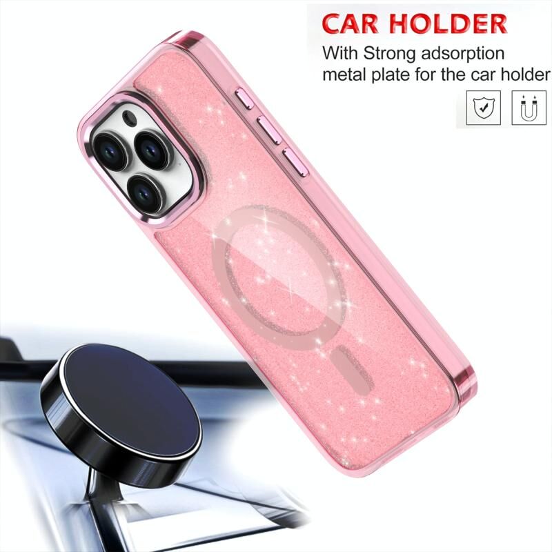 Θήκη τηλεφώνου για iPhone 16 Plus με γκλίτερ, αντικραδασμική, συμβατή με MagSafe (Μαύρο)