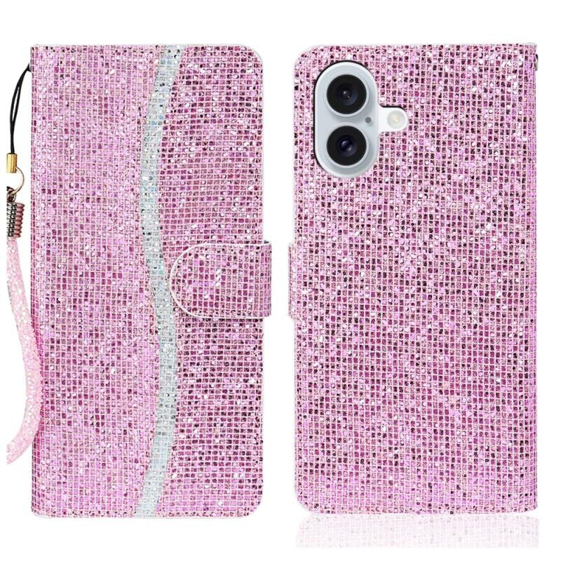 Θήκη τηλεφώνου από δέρμα με γκλίτερ σε σκόνη για iPhone 16 Plus (ρόζ)