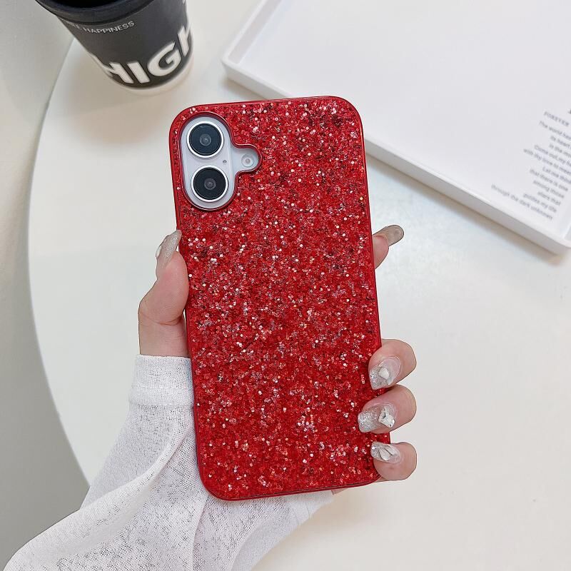 Θήκη κινητού τηλεφώνου για iPhone 16 Plus, αντικραδασμική από TPU με γκλίτερ (Κόκκινο)