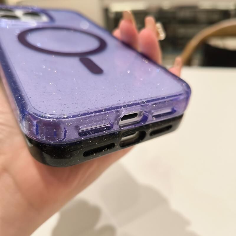 Θήκη τηλεφώνου για iPhone 16 Plus, υβριδική από TPU και PC με MagSafe, με γκλίτερ (διαφανής)