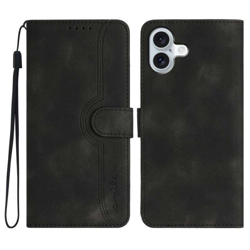 Θήκη τηλεφώνου από δέρμα με υφή καρδιάς για iPhone 16 Plus (Μαύρο)