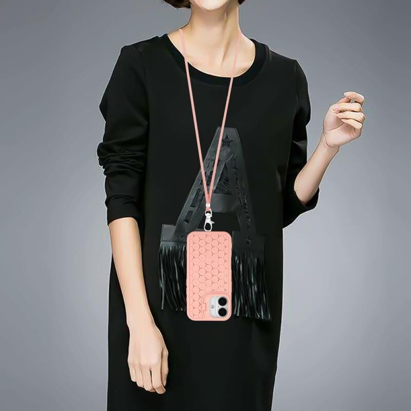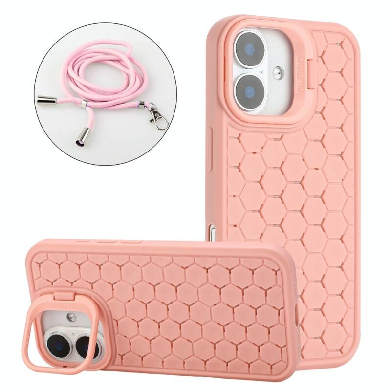 Θήκη τηλεφώνου TPU για iPhone 16 Plus με σχέδιο κυψελωτού και λουρί (Μαύρο)