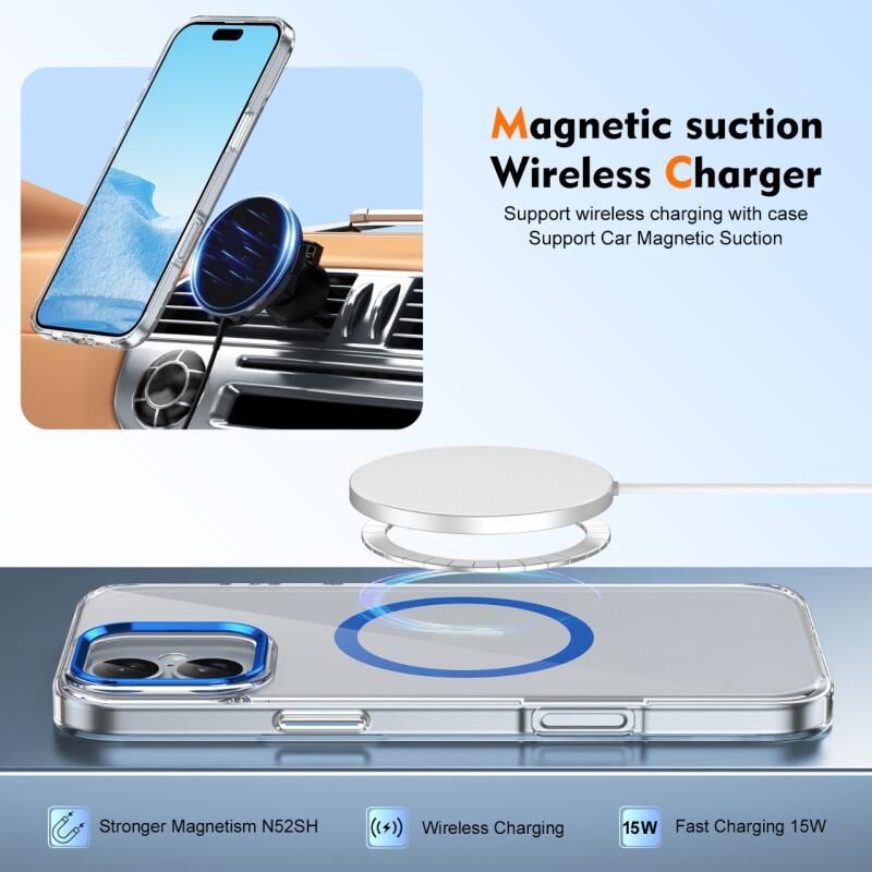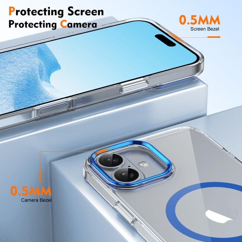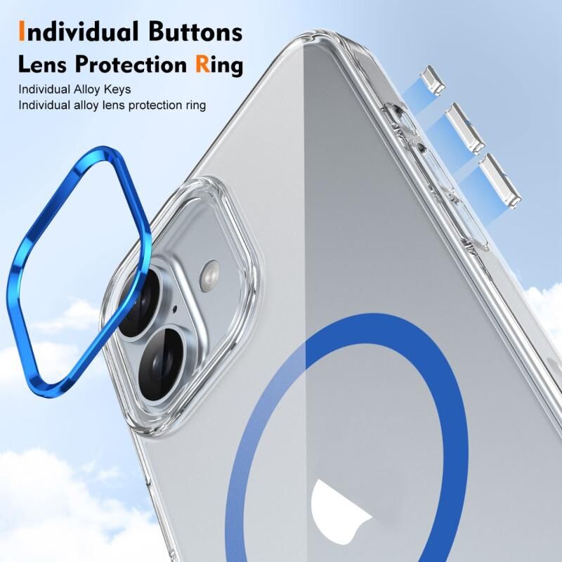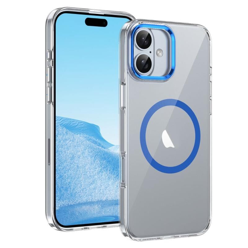 Θήκη τηλεφώνου για iPhone 16 Plus, διαφανής, με αίσθηση πάγου, HD, PC, πλήρης κάλυψη, με MagSafe (Μπλε)