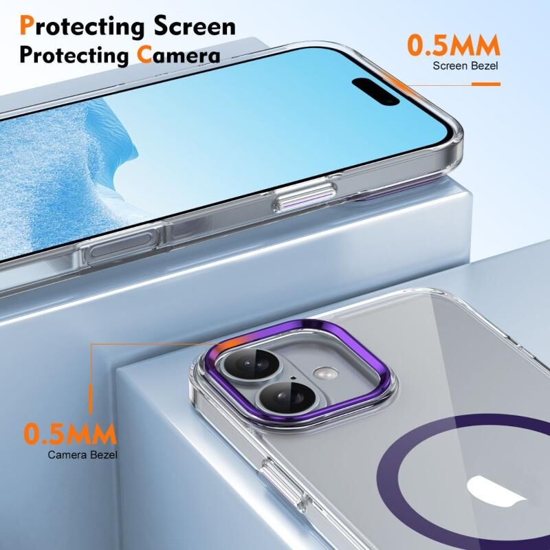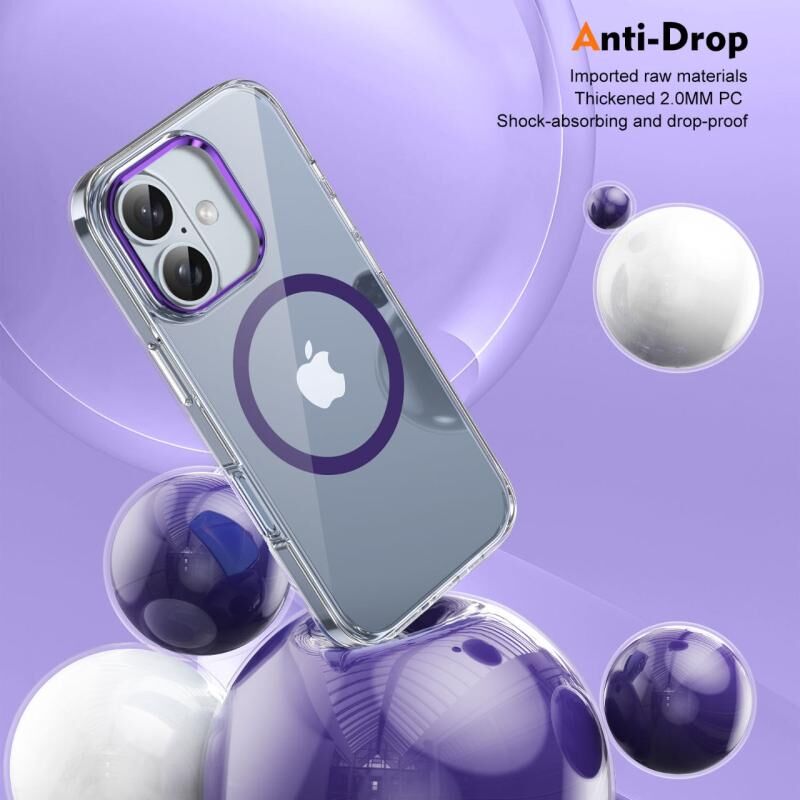 For iPhone 16 Plus Ice Feel HD Transparent MagSafe PC Full Coverage Phone Case(Purple)