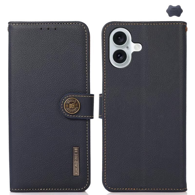 Θήκη τηλεφώνου από γνήσιο δέρμα KHAZNEH Custer με τεχνολογία RFID για iPhone 16 Plus (Μπλε)