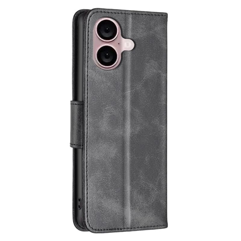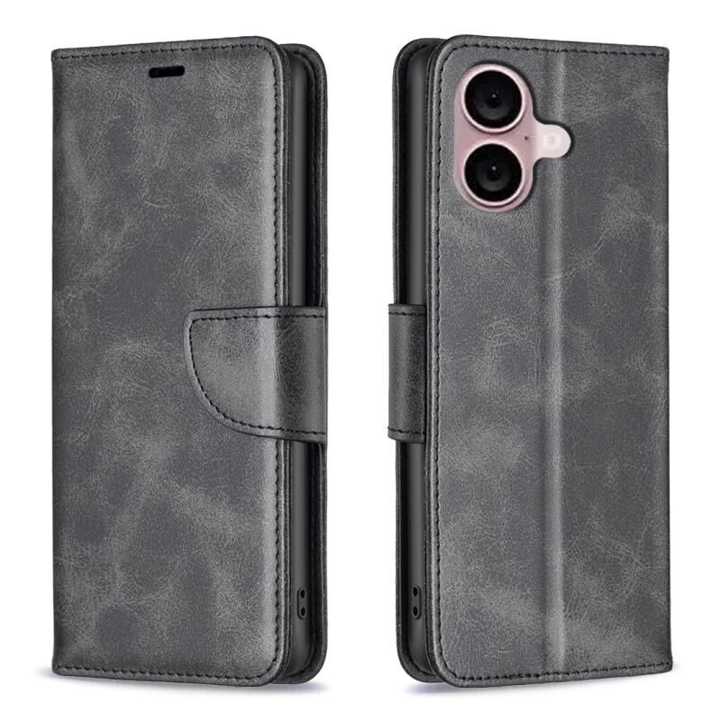 Θήκη τηλεφώνου από δέρμα με υφή δέρματος αρνιού, σε απλό χρώμα και με φλιπ για iPhone 16 Plus (Κίτρινο)