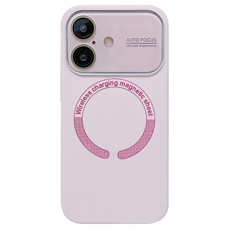 For iPhone 16 Plus Large Window Acrylic Glass Lens MagSafe Silicone Phone Case(Ash Powder)