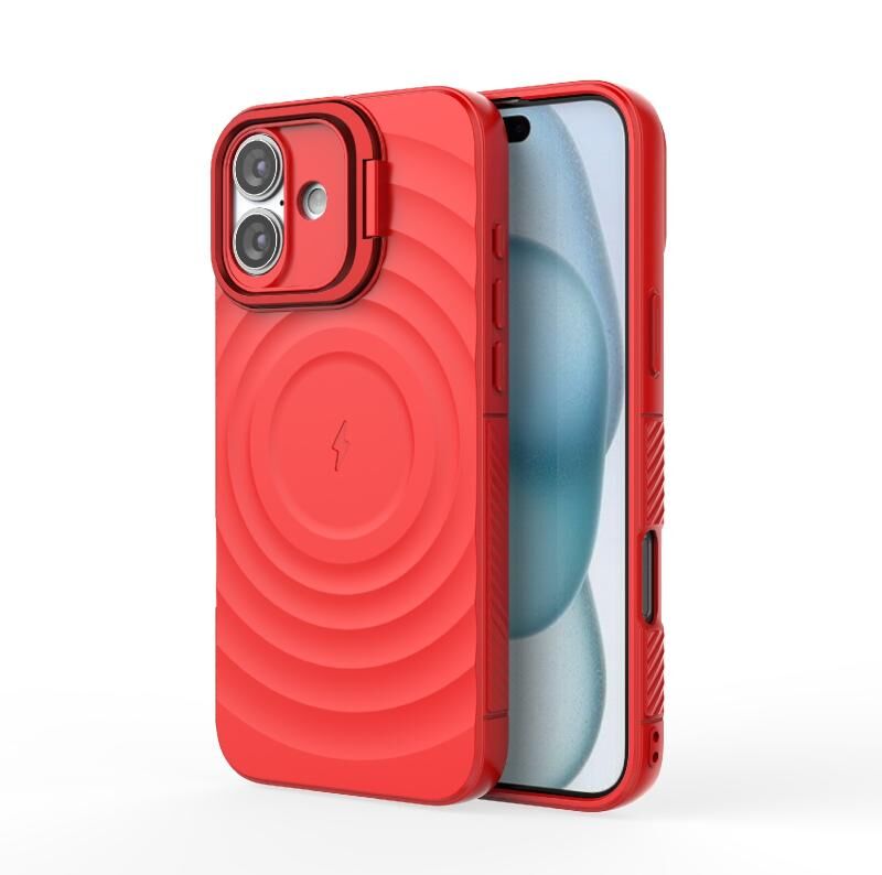 Βάση στήριξης φακού για iPhone 16 Plus, θήκη τηλεφώνου με κυματοειδές σχέδιο MagSafe (Μαύρο)