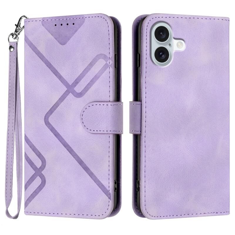 Θήκη τηλεφώνου από δέρμα με υφή και σχέδιο γραμμών για iPhone 16 Plus (ανοιχτό μωβ)
