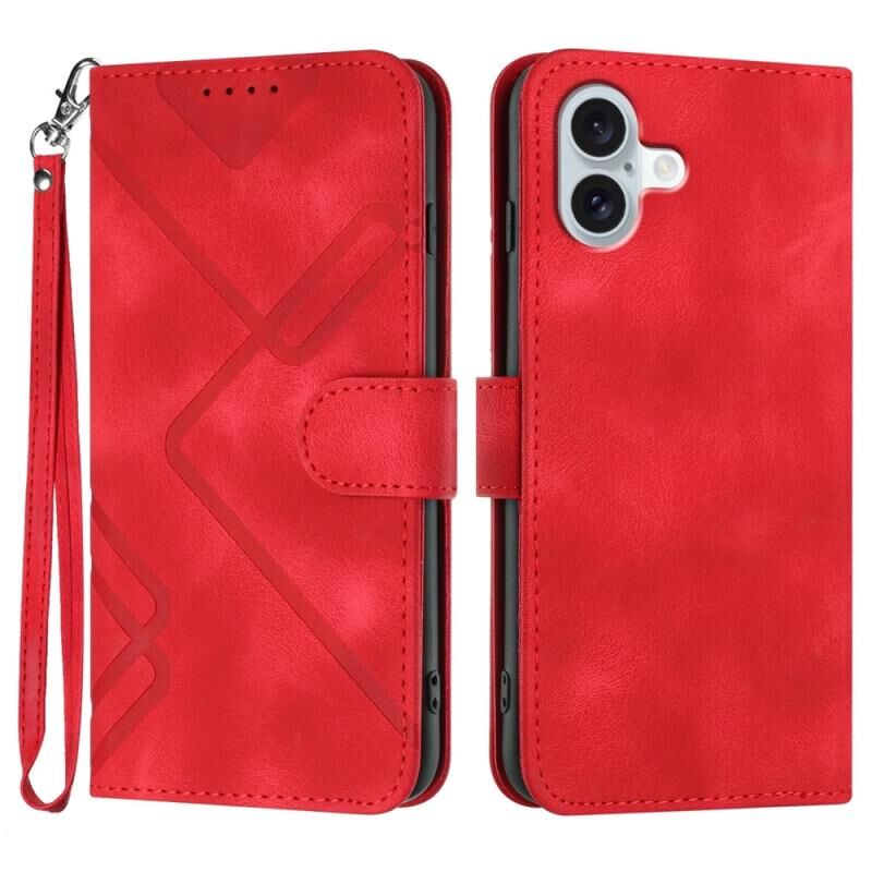 Θήκη τηλεφώνου από δέρμα με υφή και σχέδιο γραμμών για iPhone 16 Plus (Κόκκινο)