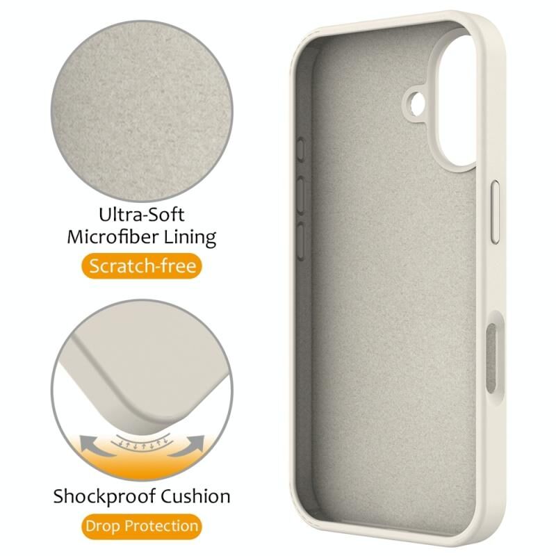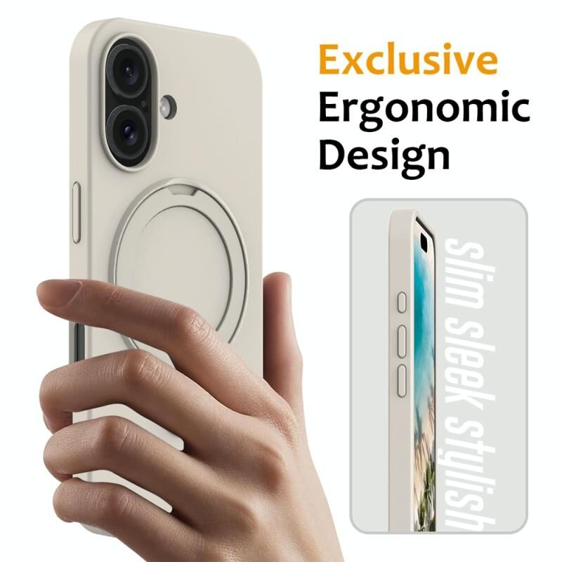 Θήκη τηλεφώνου με μαγνητική σύνδεση MagSafe από υγρή σιλικόνη για iPhone 16 Plus με δακτύλιο στήριξης (Αντίκα Λευκό)
