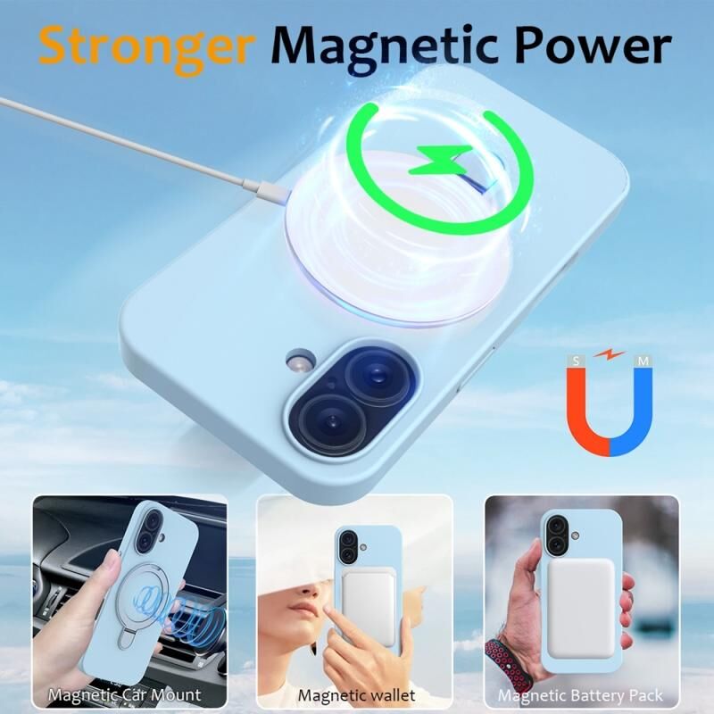 Θήκη τηλεφώνου με μαγνητική σύνδεση MagSafe από υγρή σιλικόνη για iPhone 16 Plus με δακτύλιο στήριξης (Αντίκα Λευκό)
