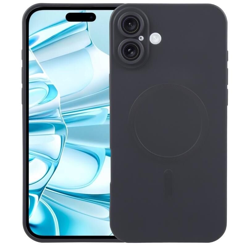 Θήκη τηλεφώνου για iPhone 16 Plus, Υγρή σιλικόνη TPU, Μονόχρωμη, με MagSafe (Μαύρο)