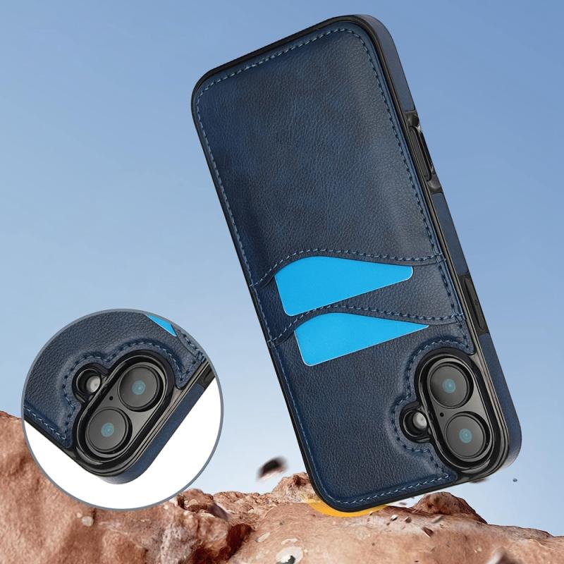 For iPhone 16 Plus Litchi Leather Skin Card Slots Phone Case(Blue)