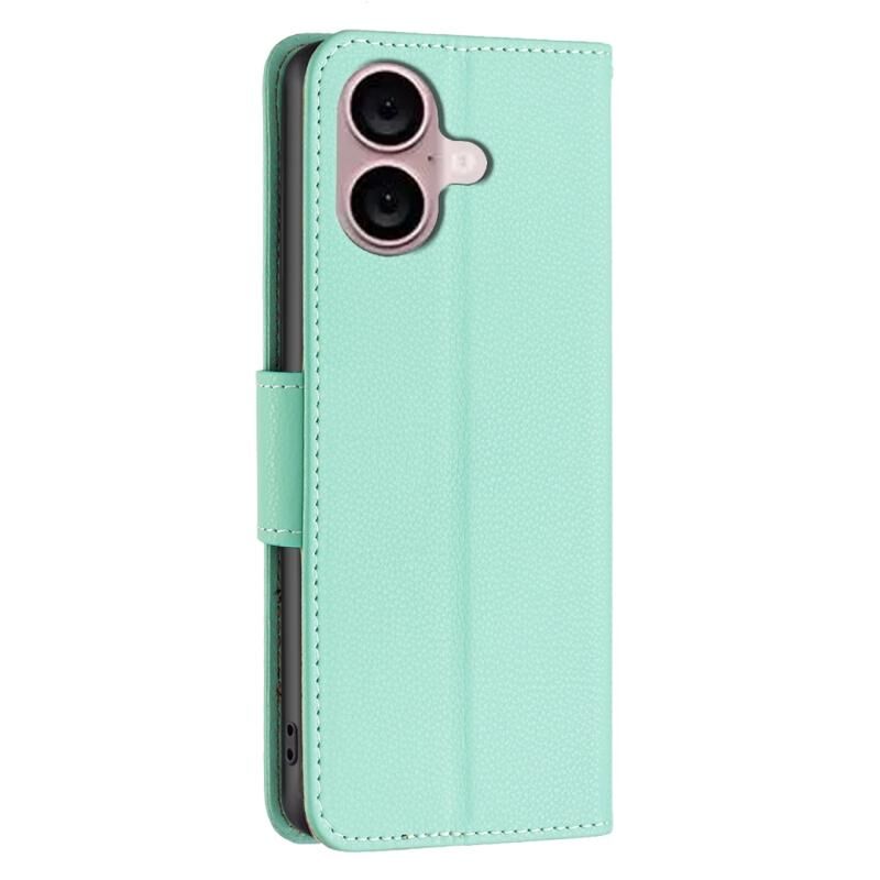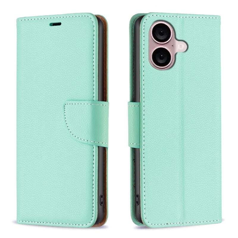 Θήκη τηλεφώνου από δέρμα με ανάγλυφη υφή λitchi και απλό χρώμα για iPhone 16 Plus (Γκρι)
