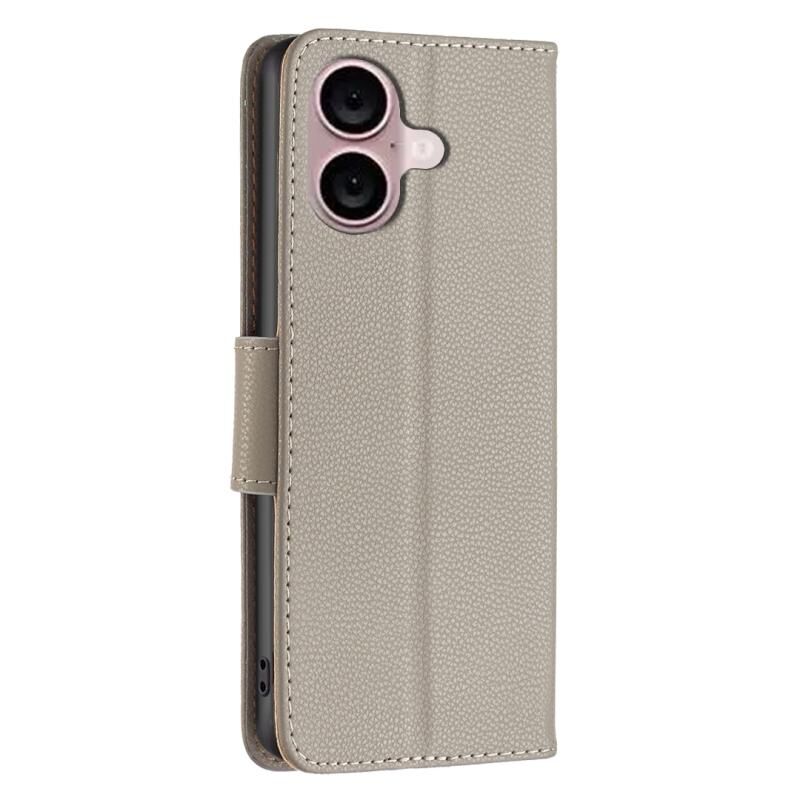 Θήκη τηλεφώνου από δέρμα με ανάγλυφη υφή λitchi και απλό χρώμα για iPhone 16 Plus (Γκρι)