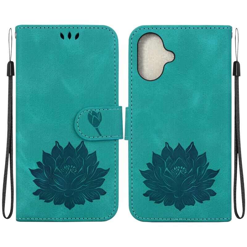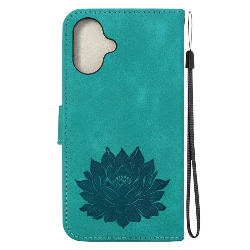 Θήκη τηλεφώνου από δέρμα με ανάγλυφο λωτού για iPhone 16 Plus (πράσινο)