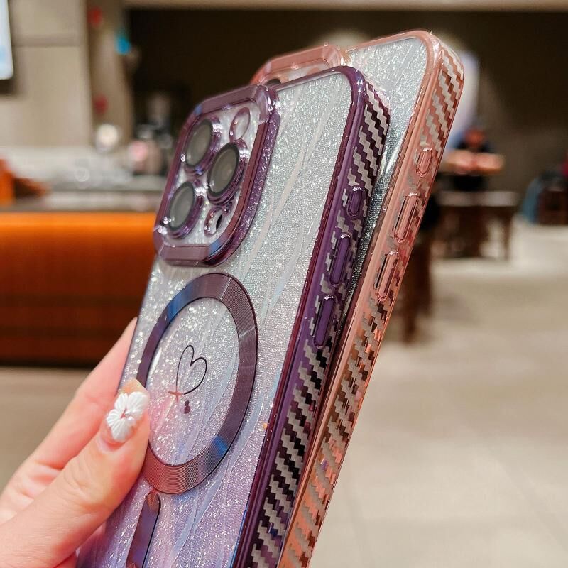 Θήκη τηλεφώνου για iPhone 16 Plus με σχέδιο φύλλων σε βαθμιδωτά χρώματα, γκλίτερ, μαγνητική σύνδεση Magsafe και υλικό TPU από ανθρακονήματα (Μαύρο)