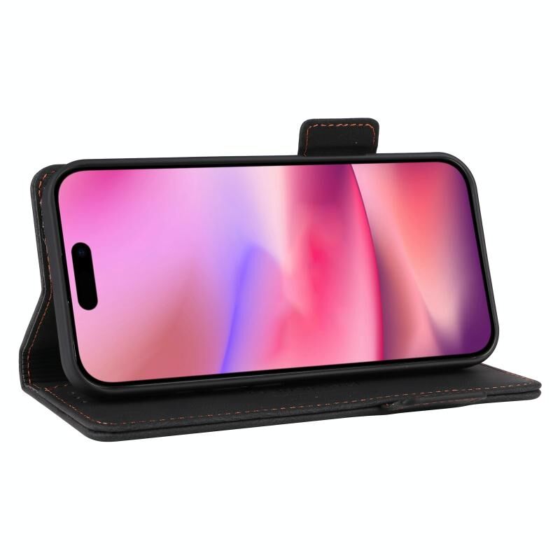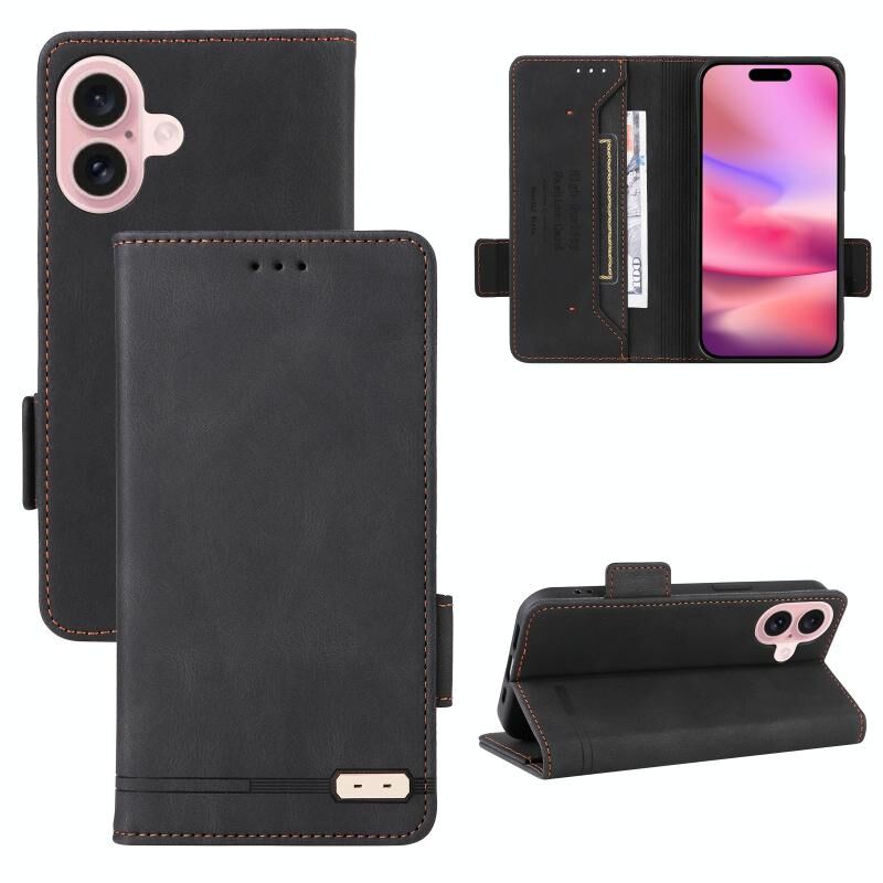 Για iPhone 16 Plus Μαγνητικό κούμπωμα Δερμάτινη θήκη τηλεφώνου (Μαύρο)