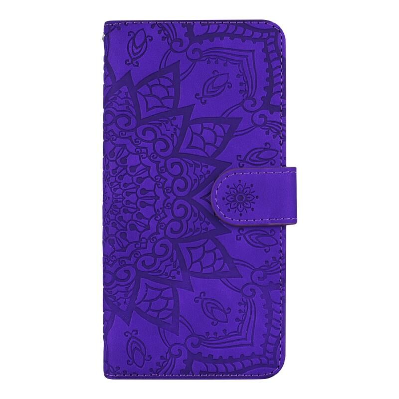 Θήκη τηλεφώνου για iPhone 16 Plus με ανάγλυφο Mandala, διπλού τύπου, από δέρμα μοσχαριού (Μωβ)