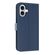 For iPhone 16 Plus Metal Bow Leather Phone Case with Hand Strap(Dark Blue)
