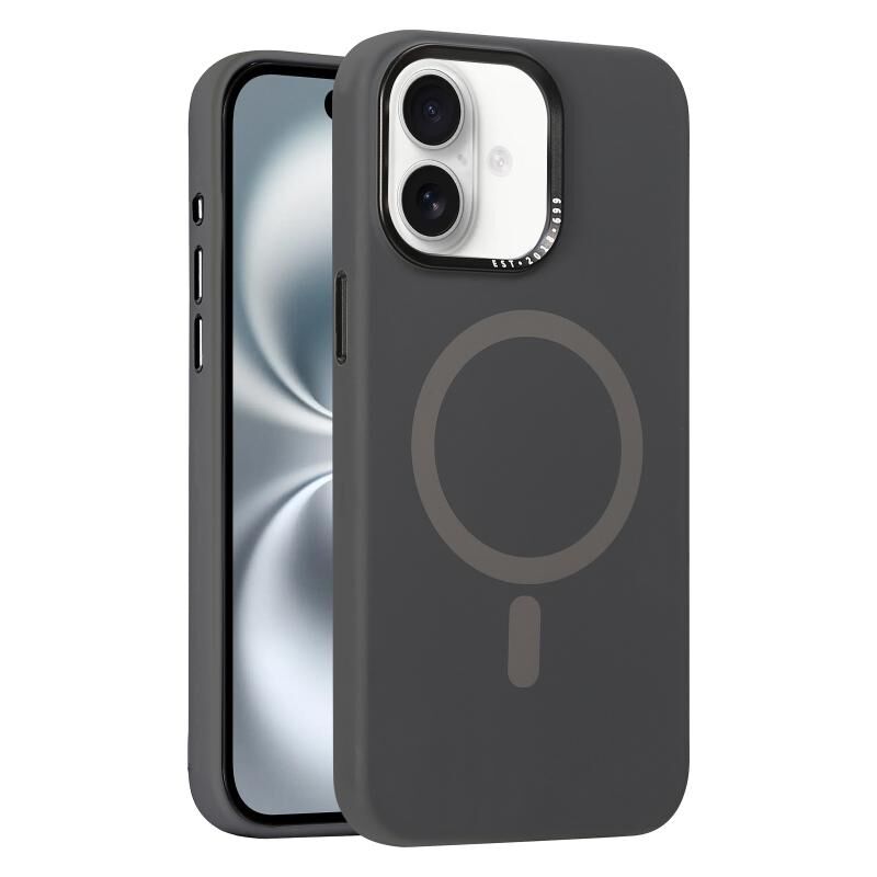 For iPhone 16 Plus Metal Lens Frame Liquid Silicone MagSafe Phone Case(Charcoal Gray)