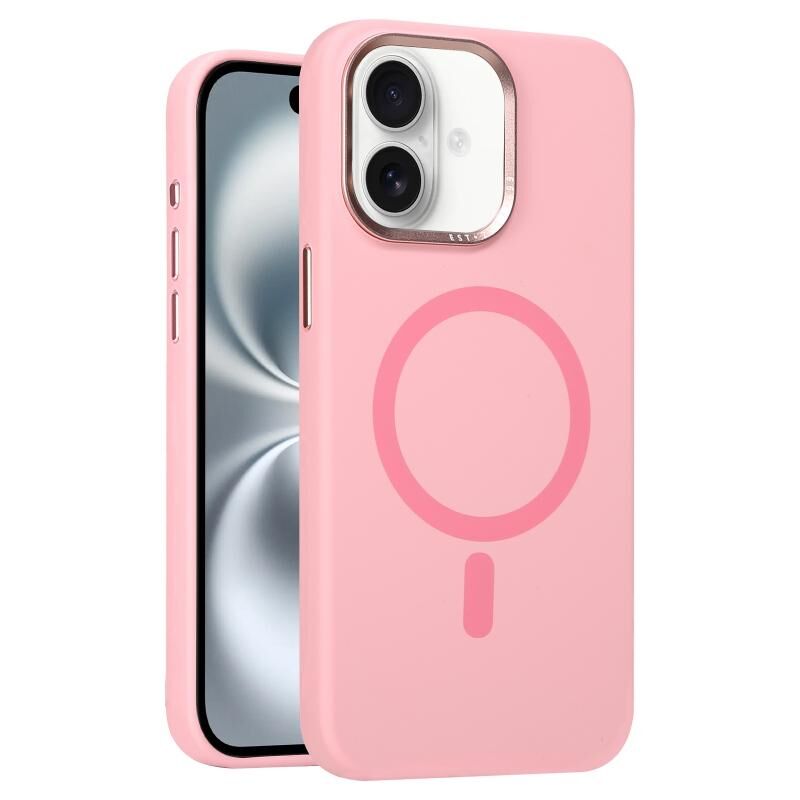 For iPhone 16 Plus Metal Lens Frame Liquid Silicone MagSafe Phone Case(Rose Pink)