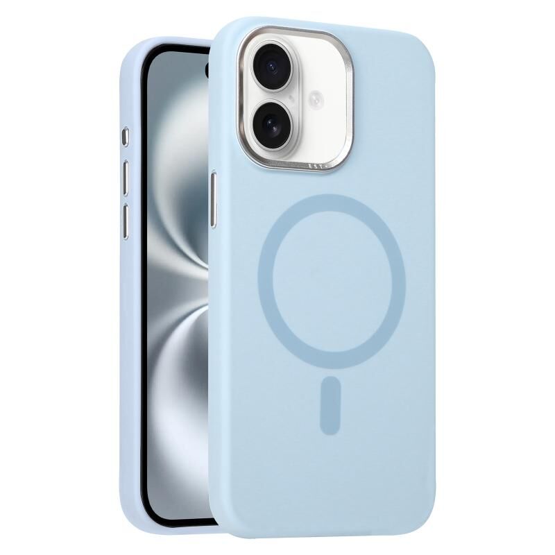 For iPhone 16 Plus Metal Lens Frame Liquid Silicone MagSafe Phone Case(Sierra Blue)