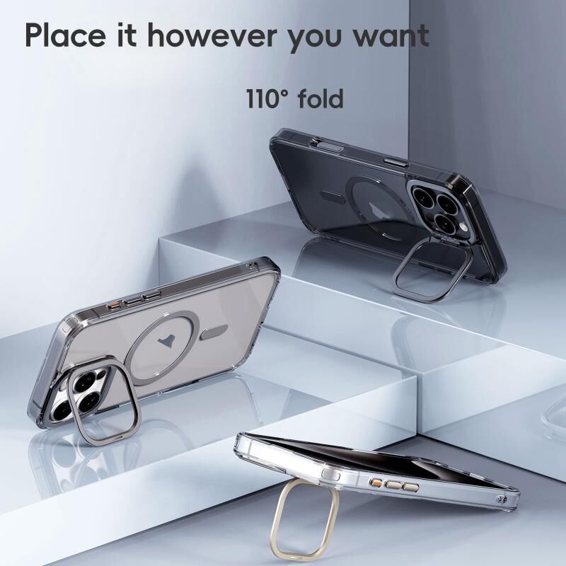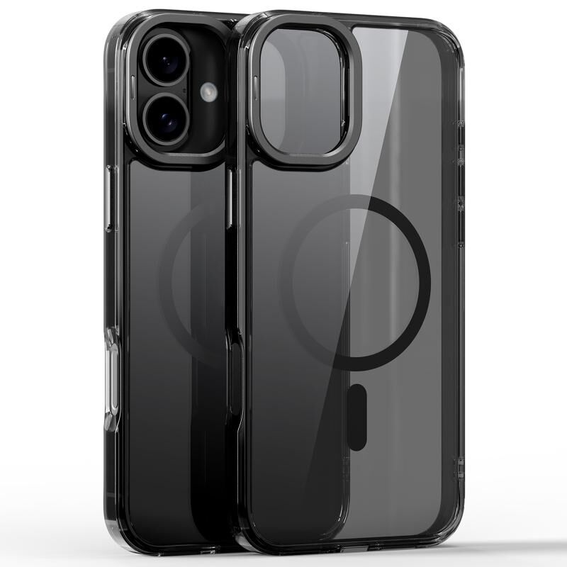 Θήκη τηλεφώνου MagSafe με μαγνητική έλξη για iPhone 16 Plus, διαφανής μαύρη με κρύσταλλο καθρέφτη για την προστασία του φακού.