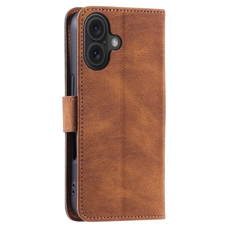 Θήκη τηλεφώνου για iPhone 16 Plus με υφή δέρματος μοσχαριού, ραφή που θυμίζει νύχι (Καφέ)