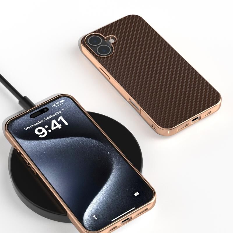 Θήκη τηλεφώνου από ανθρακονήματα με νανοεπίστρωση και υφή για iPhone 16 Plus (Σκούρο καφέ)