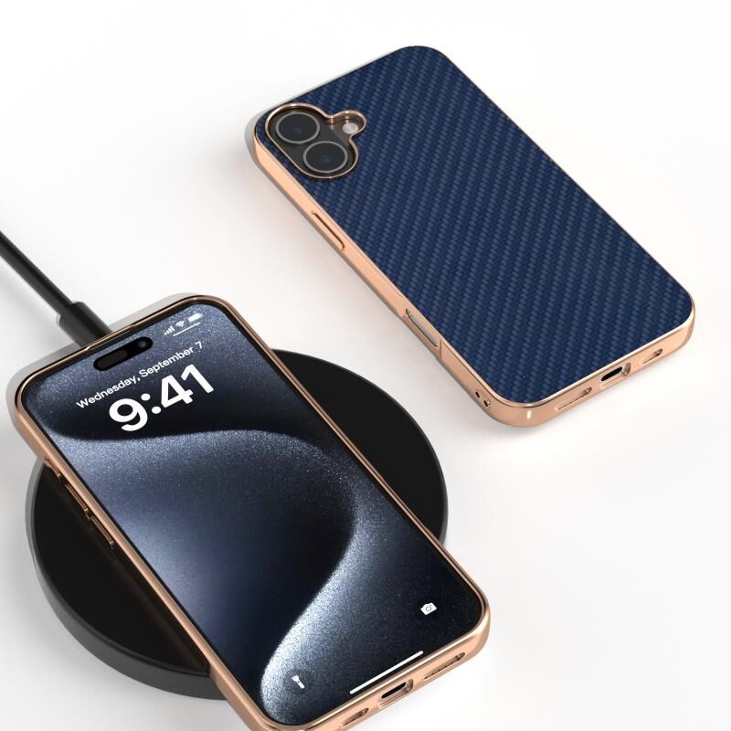 Θήκη τηλεφώνου από ανθρακονήματα με νανοεπίστρωση και υφή για iPhone 16 Plus (Σκούρο Καφέ)