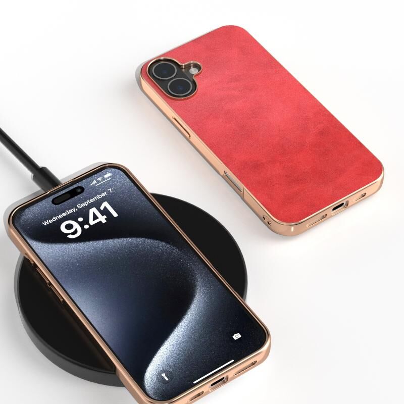 Θήκη Προστασίας για iPhone 16 Plus με Νανο-Επιμετάλλωση, Διπλό Χρώμα, Υφή Δέρματος Μοσχαριού (Κόκκινο)