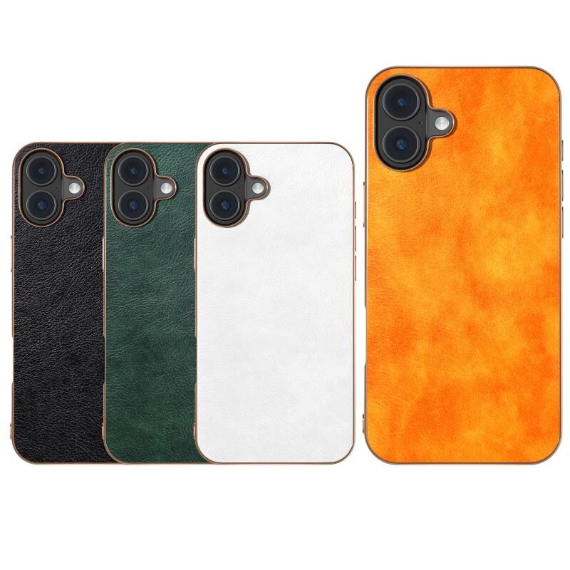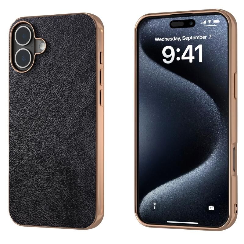 Θήκη τηλεφώνου για iPhone 16 Plus με νανο-επίχρυση, διχρωμία και υφή Lichi από PU (Λευκό)
