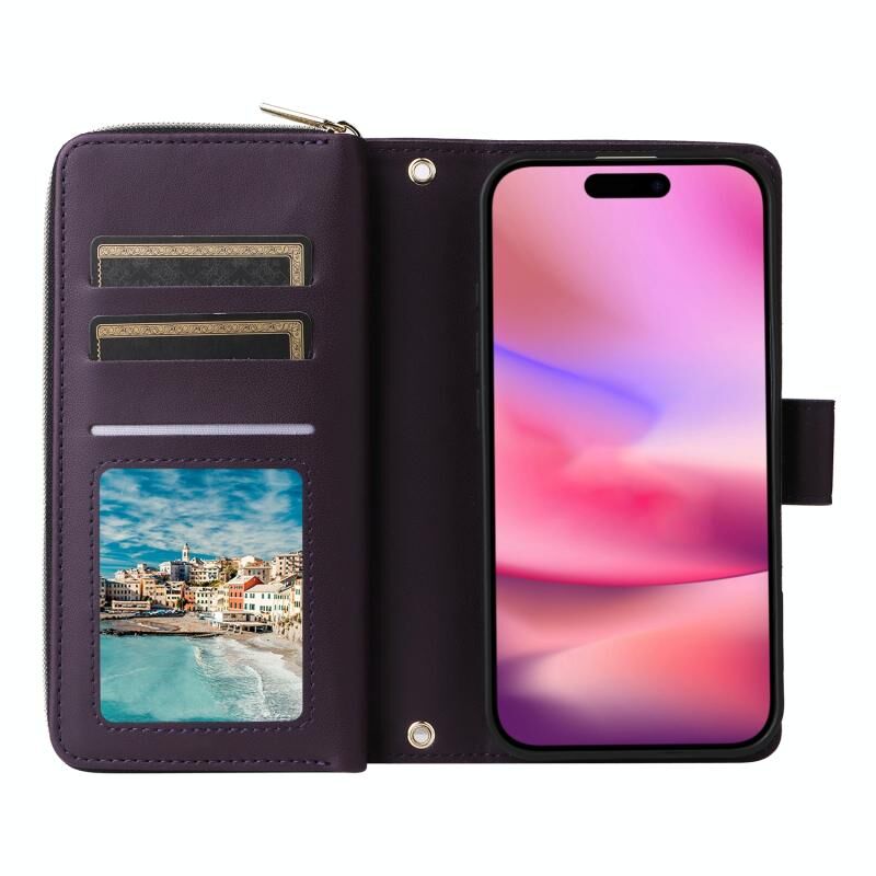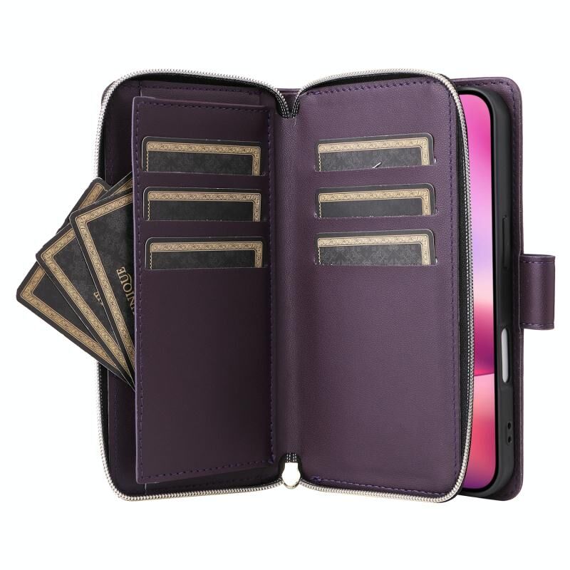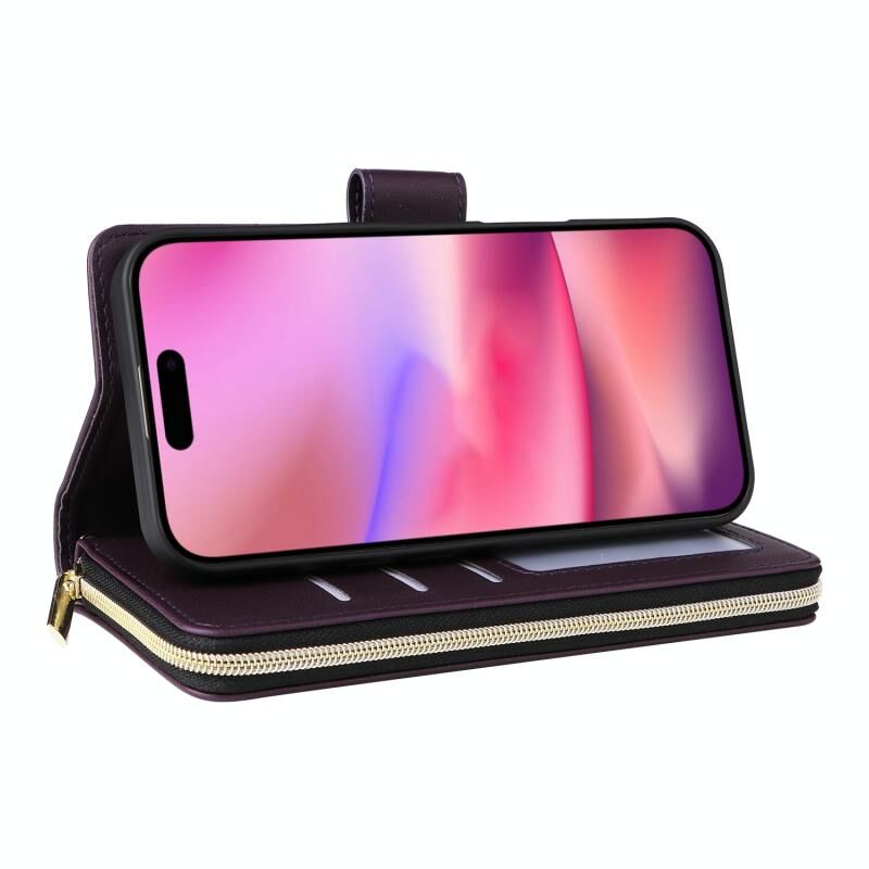 5. Πρακτική Λειτουργία Θήκης Καρτών: Η θήκη καρτών και η τσέπη πορτοφολιού με φερμουάρ και το διαμέρισμα για μετρητά μπορούν να αποθηκεύσουν τις πιστωτικές σας κάρτες, μετρητά ή μικρά χαρτονομίσματα που χρειάζεστε καθημερινά.