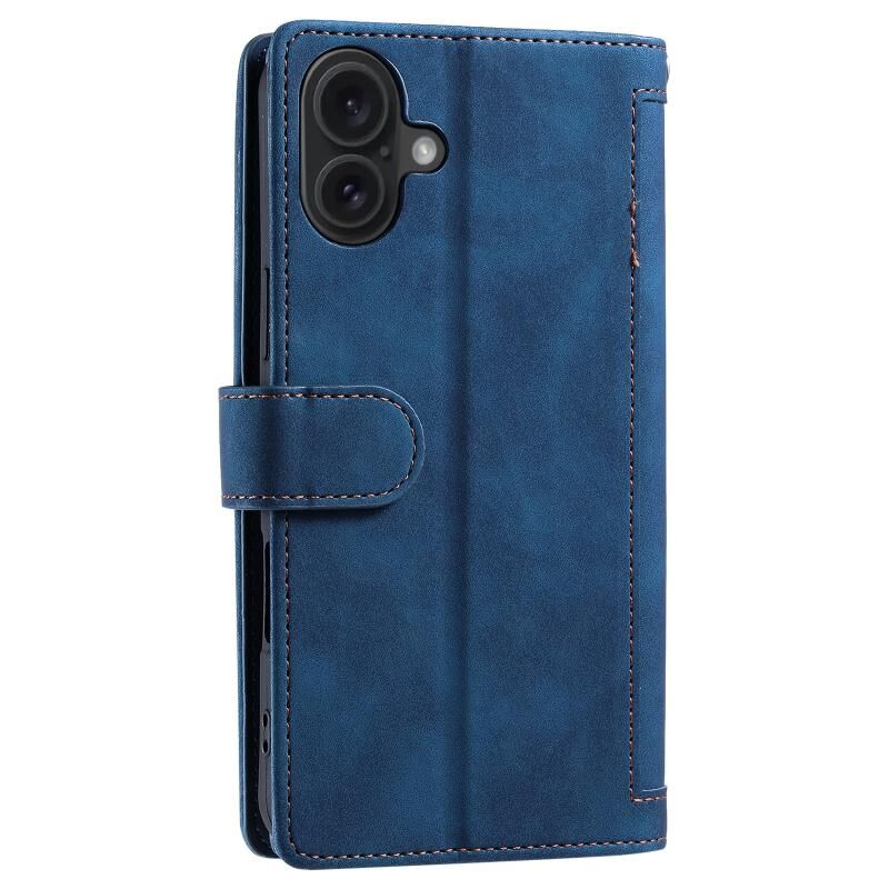For iPhone 16 Plus Nine Card Zipper Bag Leather Phone Case with Lanyard(Blue)