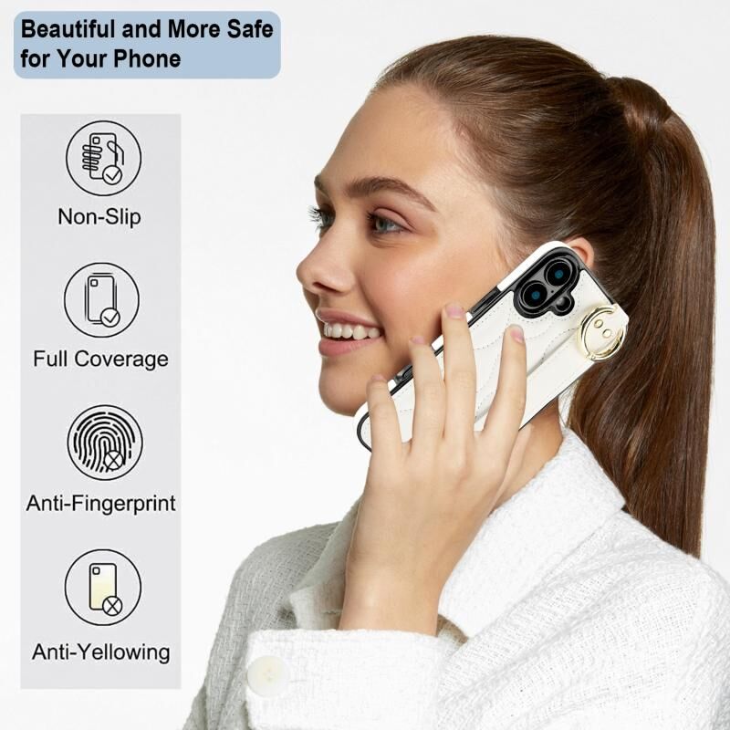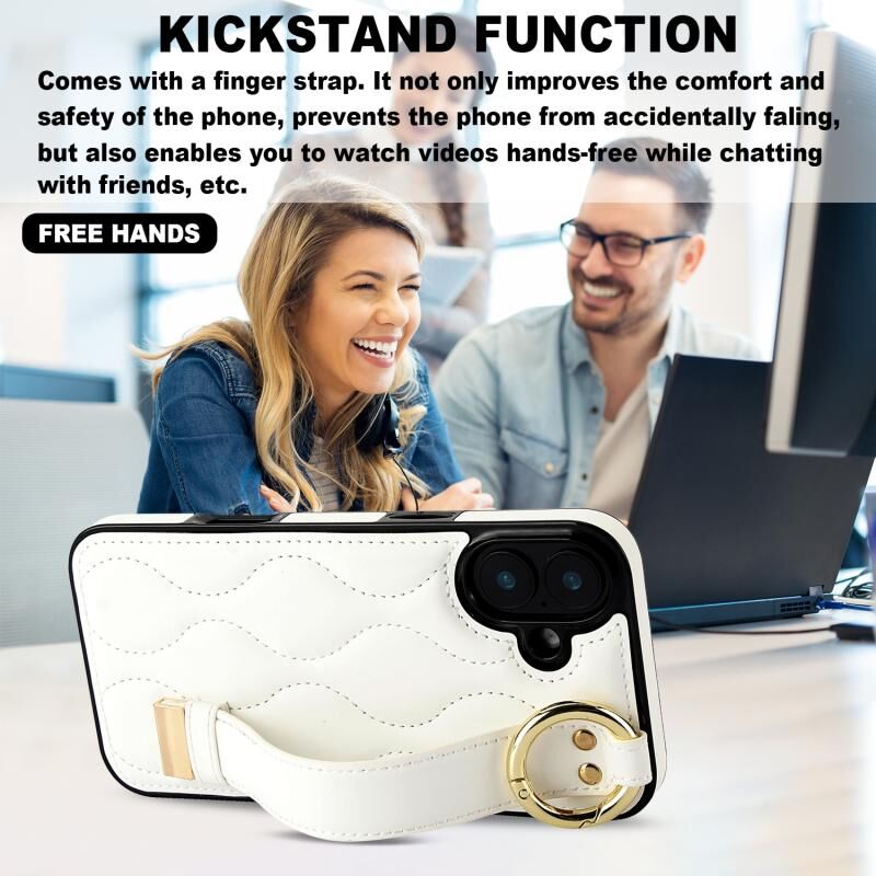 Θήκη τηλεφώνου για iPhone 16 Plus, αντιολισθητική, πλήρης κάλυψη, με δακτύλιο και λουρί καρπού (Μαύρο)