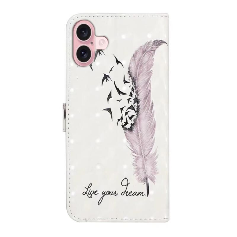 Θήκη τηλεφώνου δερμάτινη με ανάγλυφο σχέδιο λαδιού 3D για iPhone 16 Plus (Φτερό)
