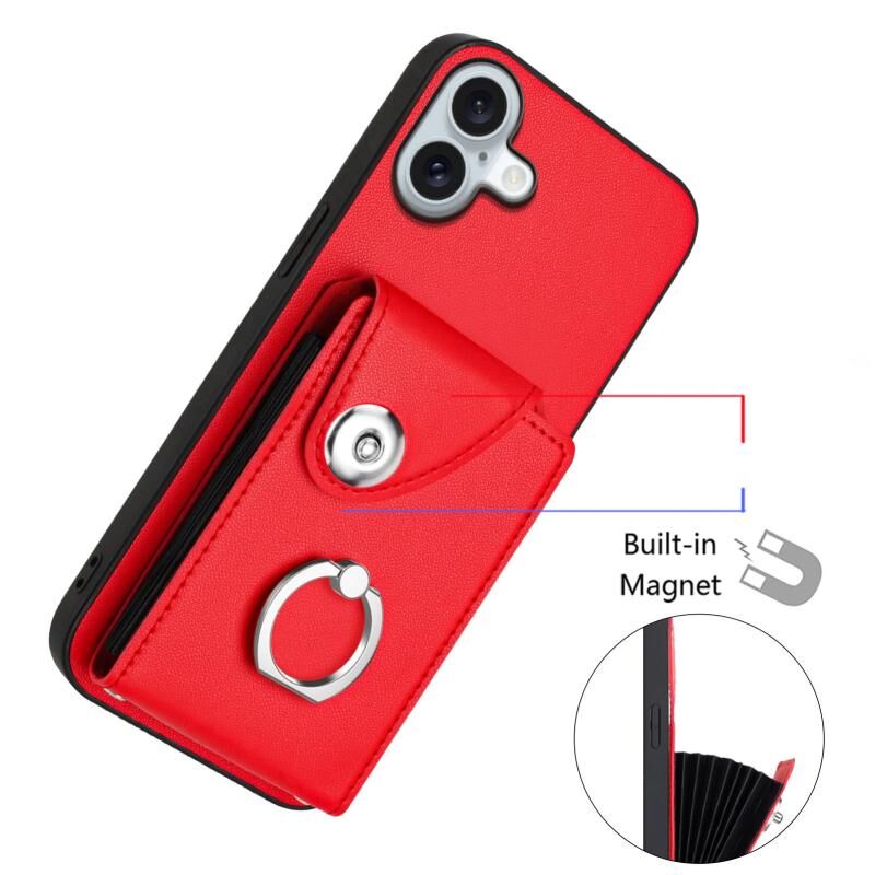 Θήκη τηλεφώνου για iPhone 16 Plus με κάρτα οργάνωσης, δακτύλιο και βάση δακτύλου (Κόκκινο)