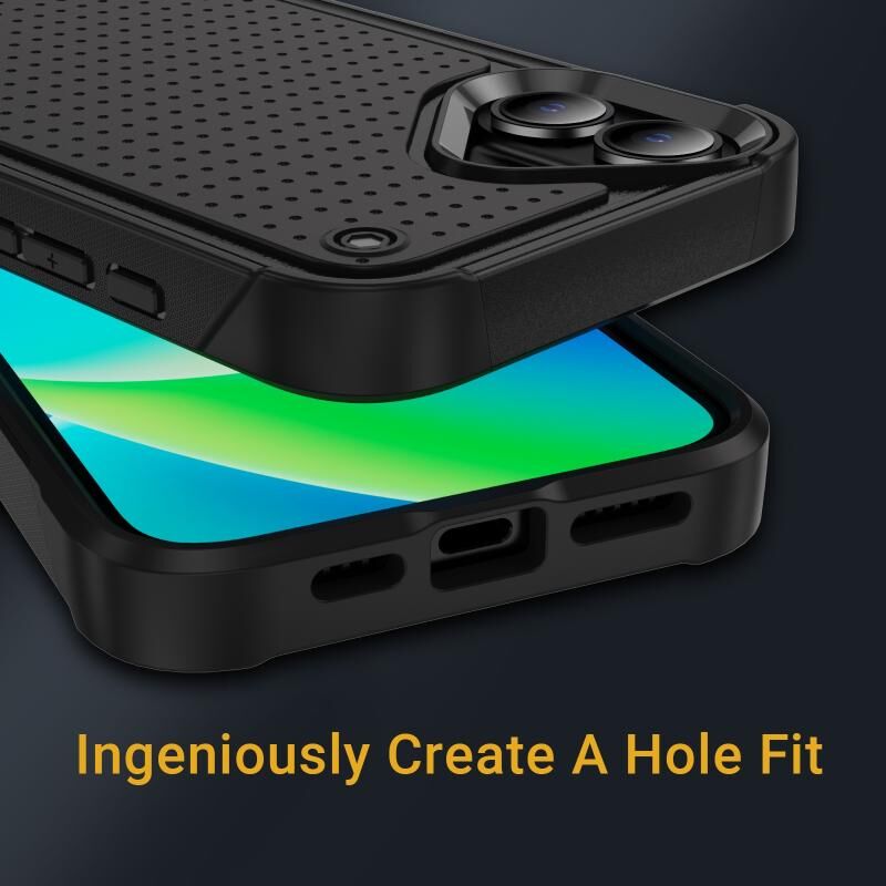 Θήκη Προστασίας για iPhone 16 Plus PC + TPU Ανθεκτική στις Κραδασμούς (Μαύρο + Μαύρο)